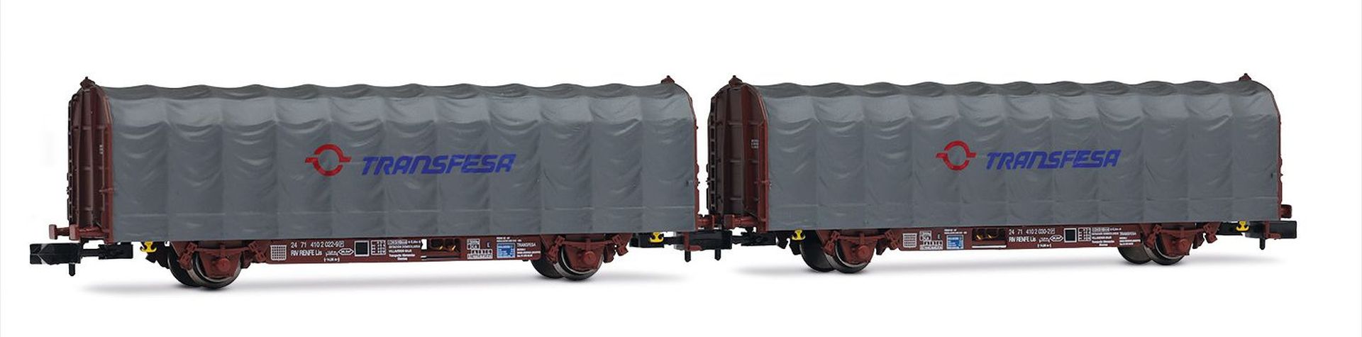 Arnold HN6711 - Zestaw 2 wagonów z plandeką przesuwną Lis, RENFE, Ep.V „Transfesa”