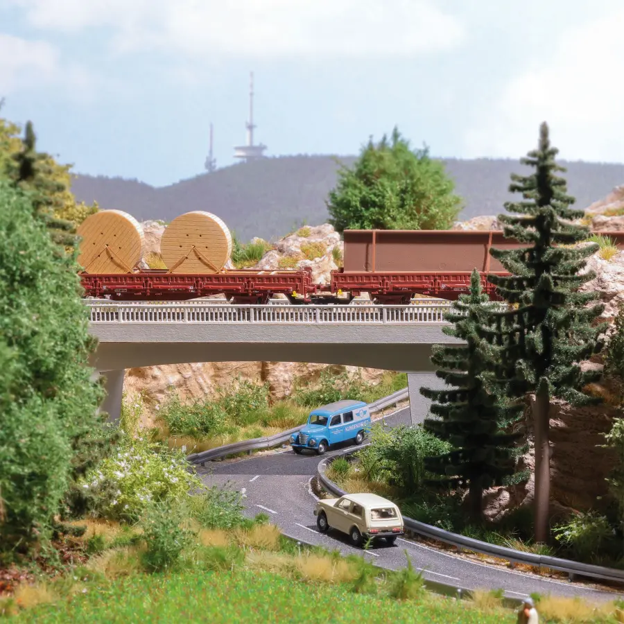 Systemy estakad drogowych wykonane z betonu stanowią wydajne i trwałe rozwiązanie do budowy estakad. Model przedstawia most z filigranową balustradą, stosowany w wielu miejscach.