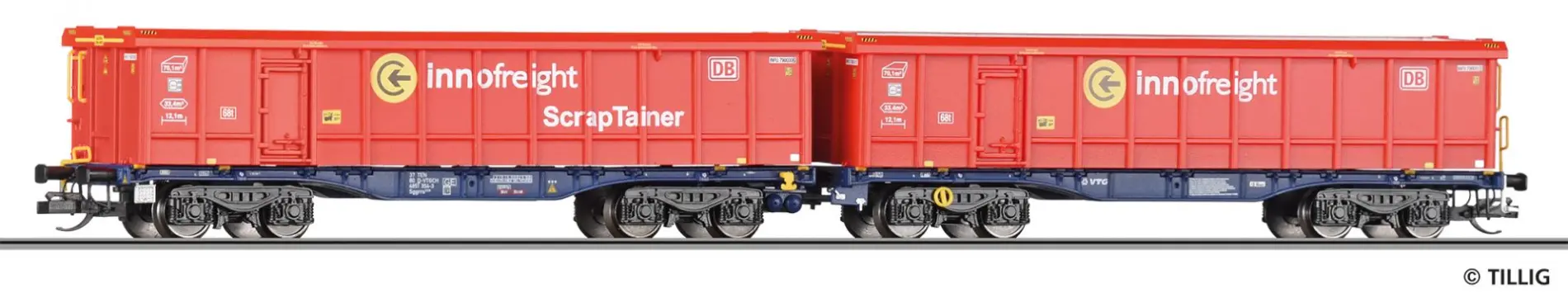 Tillig 15081 - Platforma podkontenerowa InnoWaggon 2x40' z 4 ScrapTainer, VTG, Ep.VI